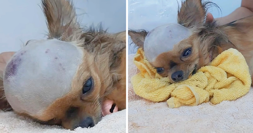 A heartbreaking incident unfolded when a young puppy was struck on the head by its owner during a moment of rage. The violent blow caused severe trauma, leaving the puppy’s head dangerously swollen and its response minimal.